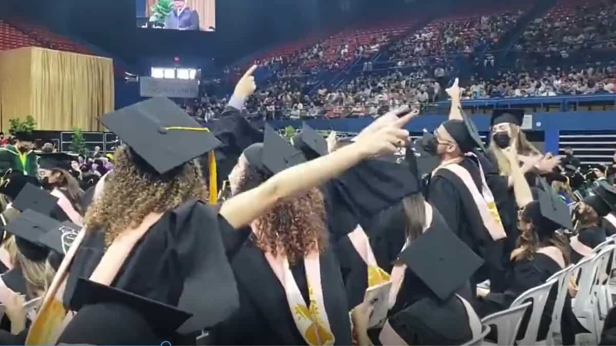 Además de abuchear y darle la espalda al primer mandatario del país, los graduandos cantaron consignas como “lucha sí, entrega no” y le gritaron “fuera” y “vende patria”. El momento fue captado en varios videos que han surgido en las redes sociales.