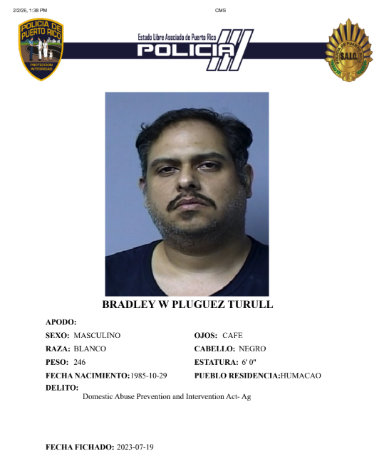 Relacionado con estos hechos, un hombre identificado como Bradley W. Pluguez Turull, de 40 años, quien es pareja de la víctima, se encuentra bajo custodia de la Policía.
