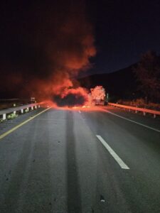 Cierran carriles en la PR-52 tras accidente de un camión y un vehículo en llamas