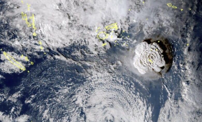 Tras a erupción de un volcán submarino cerca de la isla de Tonga.