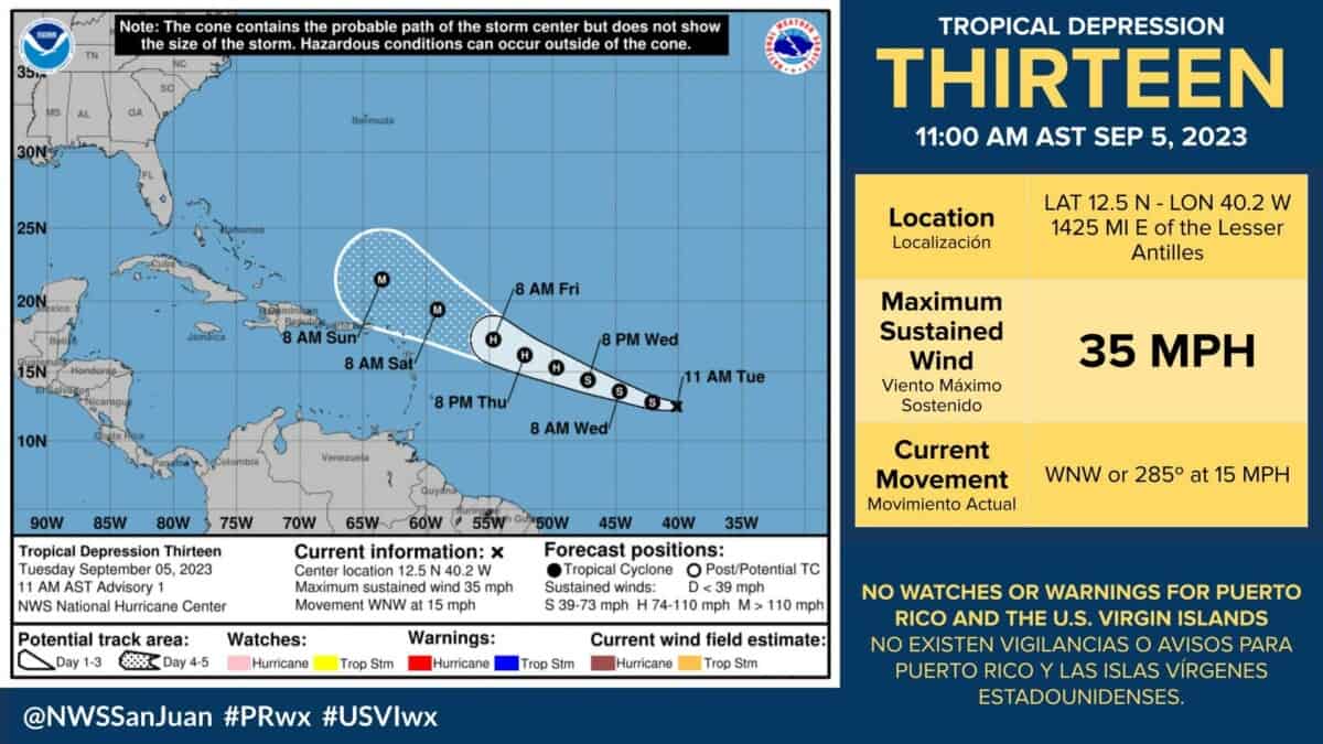 El Centro Nacional de Huracanes (CNH) en Miami, Florida, anunció este martes la formación de la depresión tropical 13 en el Atlántico Central, que podría evolucionar a un huracán poderoso para el fin de semana.
