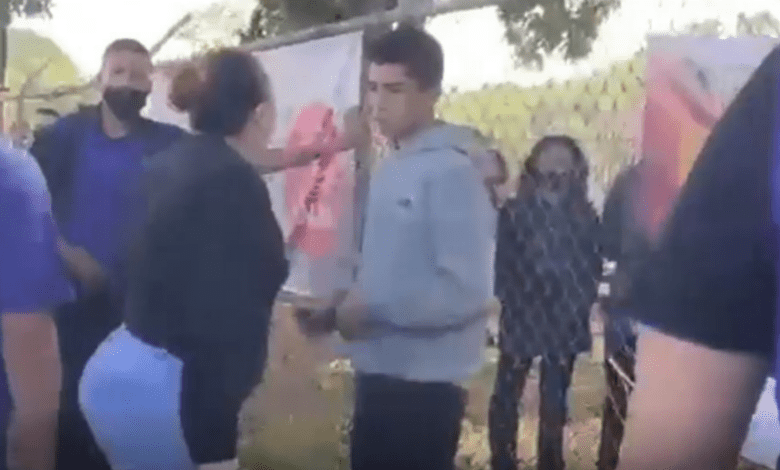 Según la información que trascendió, los hechos ocurrieron ayer, 7 de marzo, en la Escuela Vocacional Antonio Luchetti en ese municipio. En el video se puede ver como la mujer acorrala al joven contra una la verja, le agarra la ropa y la cara mientras otros alumnos observan. Además, se observa el momento en que los estudiantes intervienen con la fémina seguido por otra mujer que le reclamó que ella no podía hacerle eso a un menor.