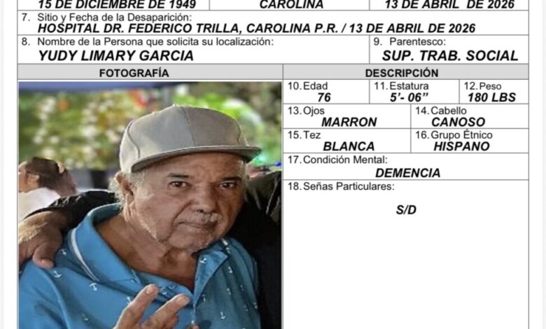 El septuagenario había sido visto por última vez en el hospital Federico Trilla tras asistir a una cita médica y luego abandonar las instalaciones en Carolina.