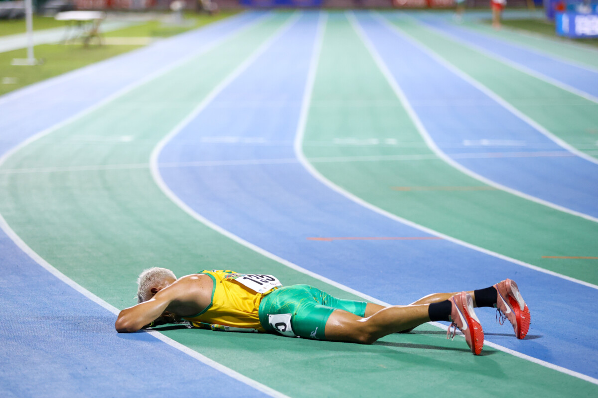 Su instinto fue tirarse al piso, rodar y acostarse boca abajo llorando de la emoción. Rompió la marca más antigua de las Justas de Atletismo de 29:43.70, realizada por otro tigre, Héctor “Papo” Díaz, en 1982.