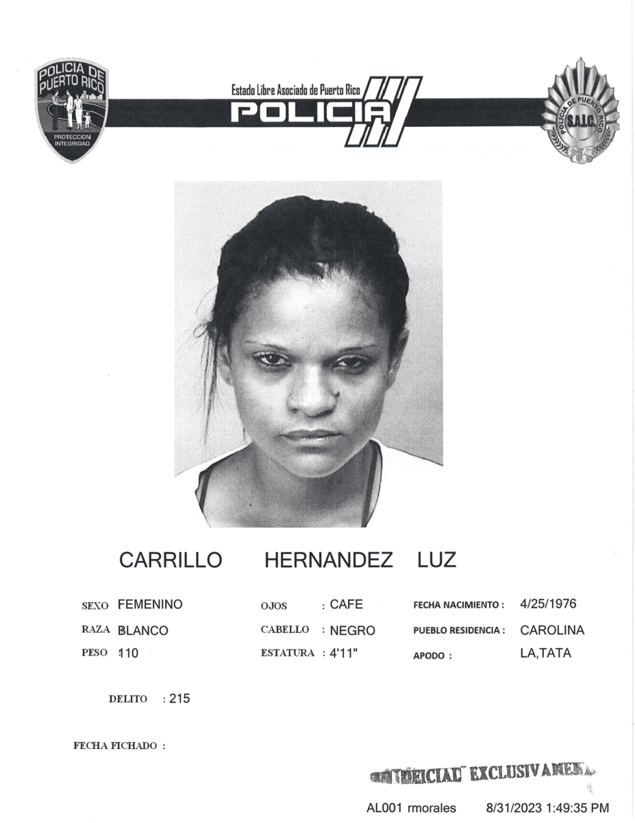La directora del CIC de Carolina, la inspectora Mabel Oliveras indicó que la víctima fue Luz “Tata” Carrillo Hernández, de 47 años y residente de Carolina, quien no había sido reportada como desaparecida.