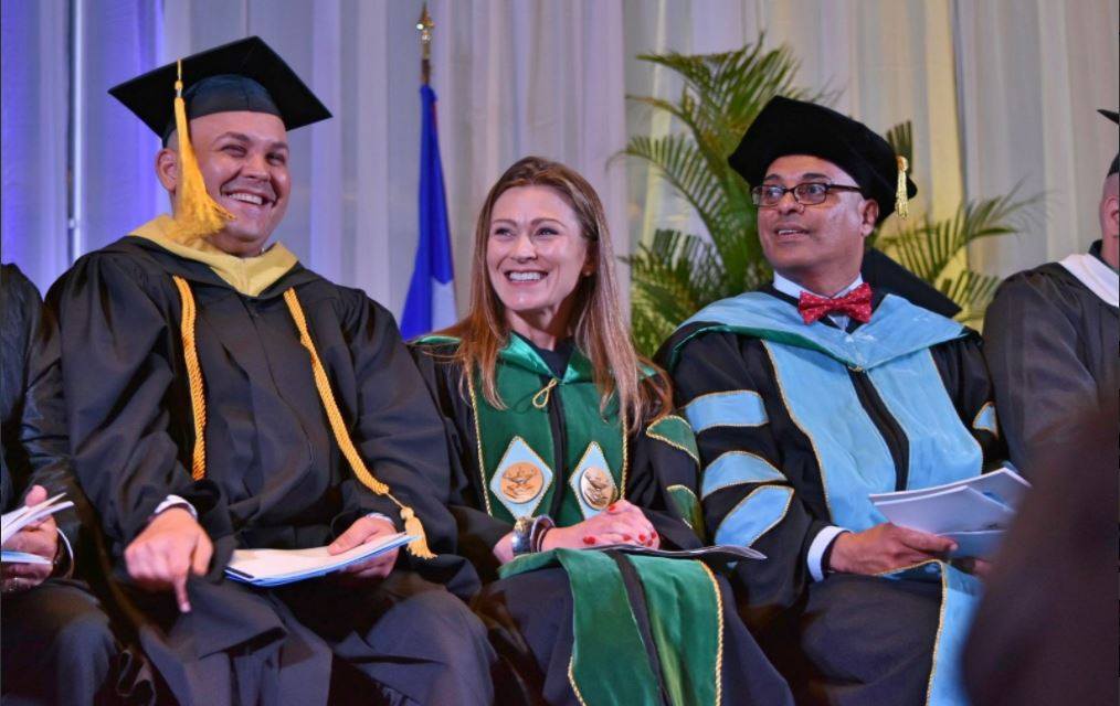 Sánchez Álvarez, a la izquierda, junto a Julia Keleher, exsecretaria del DE, y Eligio Hernández Pérez, quien fungió como subsecretario del DE, en una ceremonia de graduación en 2017.