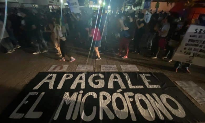 Con el mensaje de ´apágale el micrófono´, un grupo de manifestantes llegó hasta las afueras de los estudios de Mega TV ubicados en Guaynabo para exigir la cancelación del programa de Antulio ‘Kobbo’ Santarrosa, La Comay, luego de que este sexualizara la imagen de la hija de la candidata a la gobernación por el Movimiento Victoria Ciudadana, Alexandra Lúgaro.