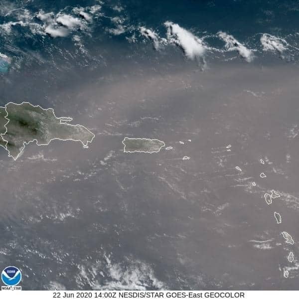 Se espera una tendencia a la sequía durante el fin de semana junto con una Capa de Aire del Sahara. Una masa de polvo del Sahara comenzará a afectar la región local, con impactos directos en Puerto Rico y las Islas Vírgenes de los Estados Unidos.