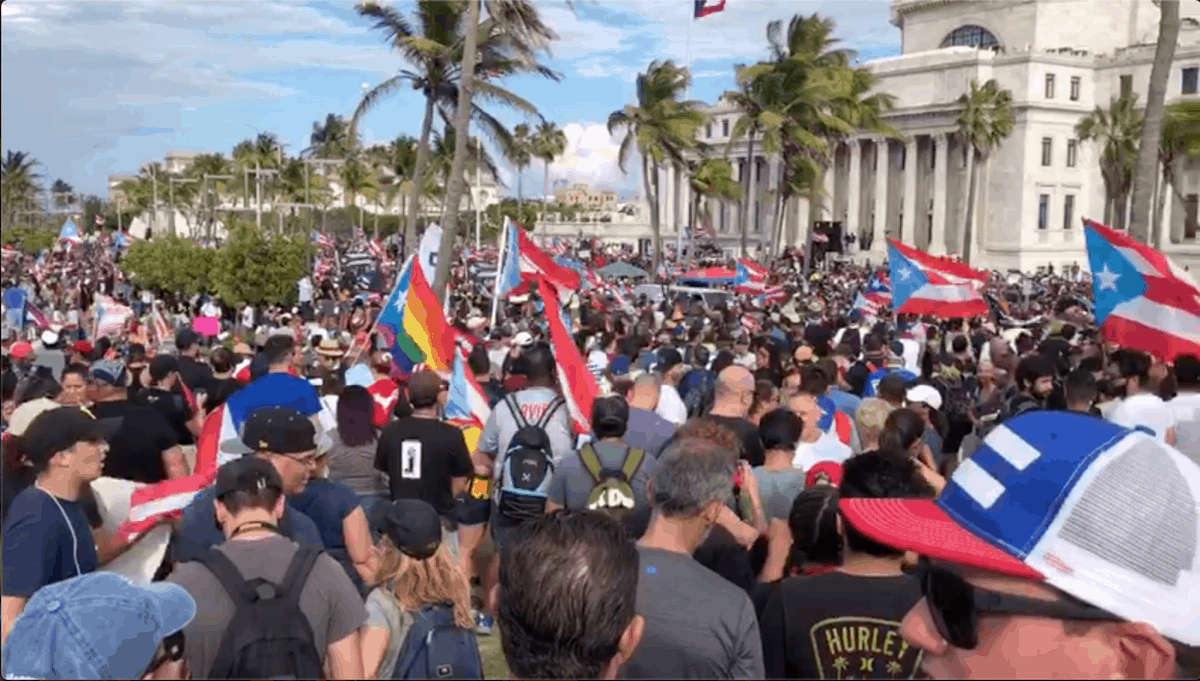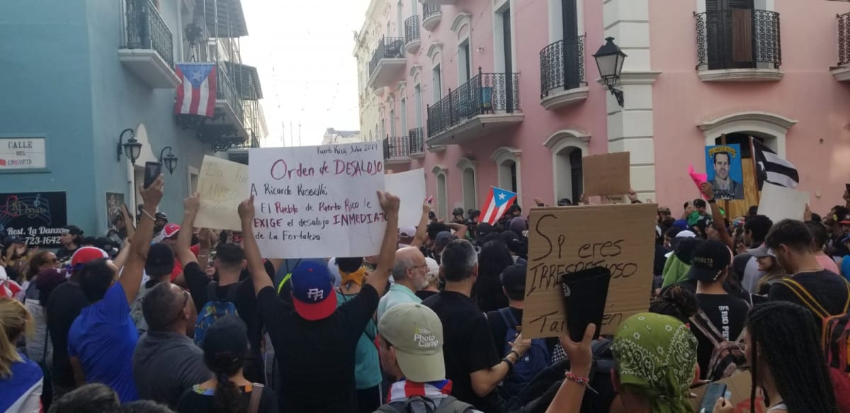 Miles de manifestantes acudieron el miércoles al Viejo San Juan, donde en El Capitolio, se concentraron junto a los cantantes René Pérez (Residente) y Benito Martínez (Bad Bunny) en reclamo de renuncia del gobernador Ricardo Rosselló.