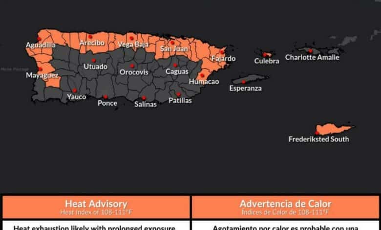 El Servicio Nacional de Meteorología ha emitido una Advertencia por Calor en efecto desde las 10 a.m. hasta las 5 p.m. Se anticipan altas temperaturas en varias áreas urbanas y costeras del oeste, norte y este de Puerto Rico, así como en Culebra y St. Croix.
