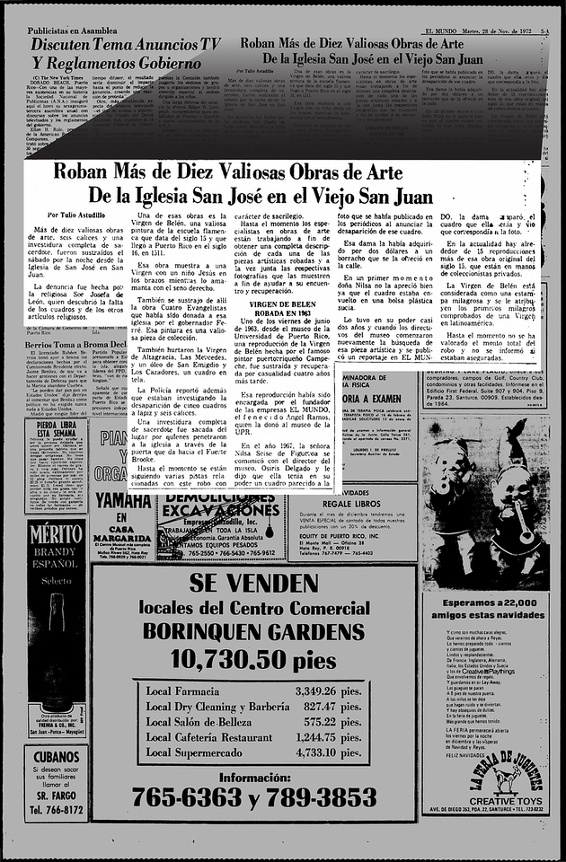 La falta de cuidado del patrimonio cultural por parte del Arzobispado precede a los huracanes Irma y María. El extinto periódico El Mundo reportó, el 28 de noviembre de 1972, el robo de más de diez valiosas obras de arte en la Iglesia San José del Viejo San Juan, entre estas el cuadro de La Vírgen de Belén o Virgen de la Leche, óleo procedente de Flandes que llegó a Puerto Rico en el Siglo 16. Nunca apareció.