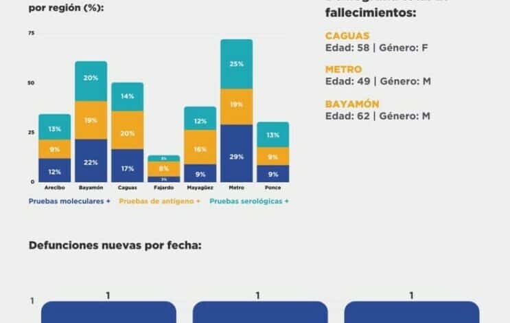 Unas tres muertes adicionales por COVID -19 se registraron el miércoles en el informe diario de seguimiento a la enfermedad del Departamento de Salud, lo que eleva la cifra de fallecidos a 2,565.