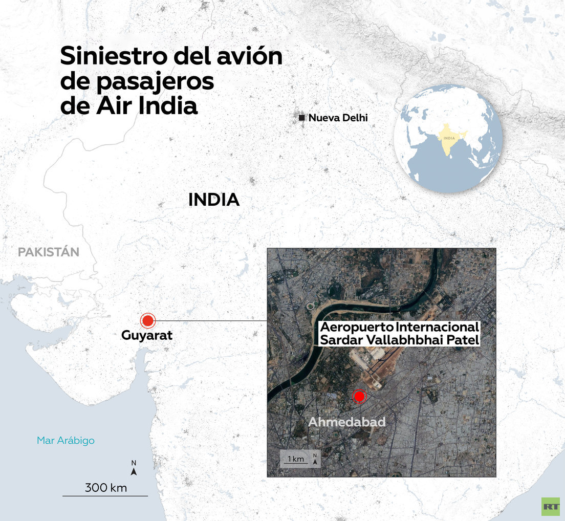En los videos publicados en las redes sociales se puede ver una densa columna de humo negro elevándose hacia el cielo cerca del aeropuerto. El ministro de Aviación Civil, Ram Mohan Naidu Kinjarapu, aseveró que está “conmocionado y devastado” por la catástrofe aérea. “Estamos en alerta máxima. Estoy monitoreando personalmente la situación y he ordenado a todas las agencias de aviación y respuesta a emergencias que tomen medidas rápidas y coordinadas. Se han movilizado equipos de rescate y se están haciendo todos los esfuerzos posibles para asegurar que la ayuda médica y el apoyo de emergencia lleguen rápidamente al lugar”, declaró.