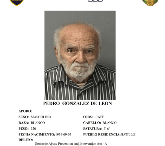 Según un informe de la Policía Municipal de Hatillo y el Departamento de Justicia de Puerto Rico, radicó cargos de Ley 54 de Violencia Doméstica a una persona adulta mayor por maltrato mediante amenaza a su pareja.