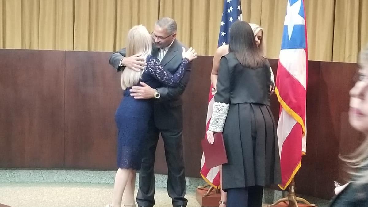 La jueza presidenta del Tribunal Supremo, Maite Oronoz Rodríguez tomó juramento a la exsecretaria de Justicia tras la salida del licenciado Pedro Rafael Pierluisi Urrutia luego de que un panel del Tribunal Supremo declarara inconstitucional las enmiendas sometidas en 2005 de la Ley 7 de 1952.